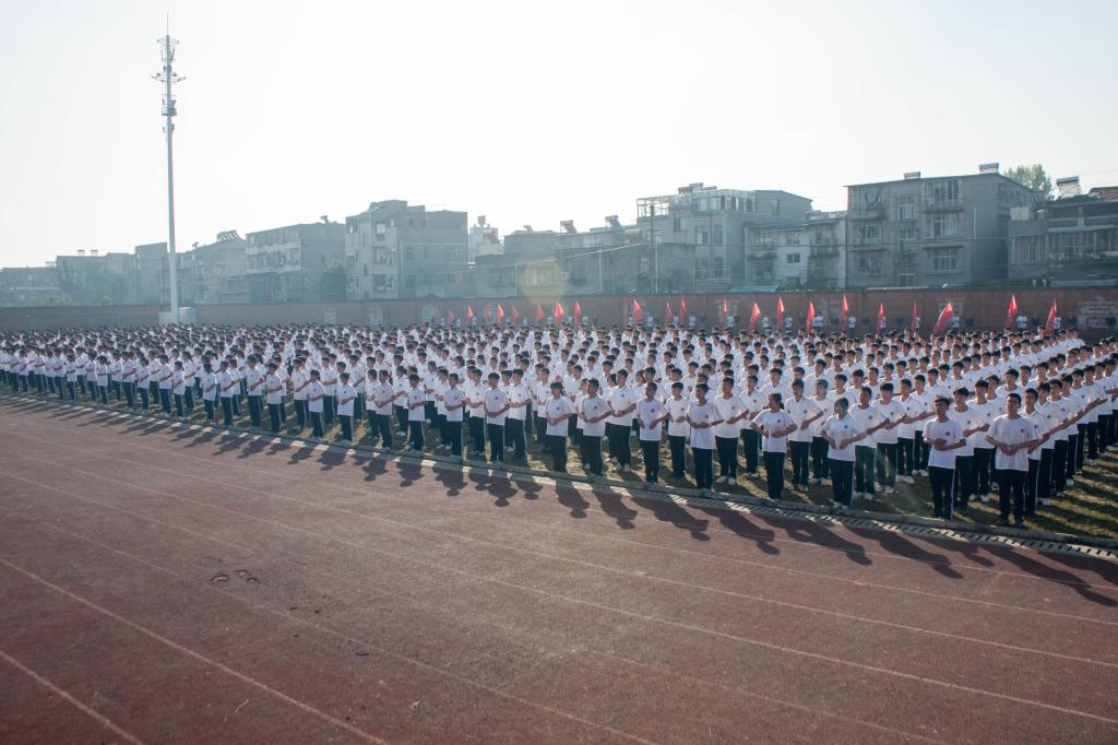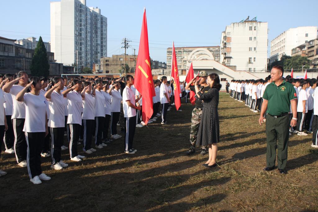 2021年9月30日上午8:00,2021级新生军训汇报表演暨总结表彰大会在学校运动场举行。