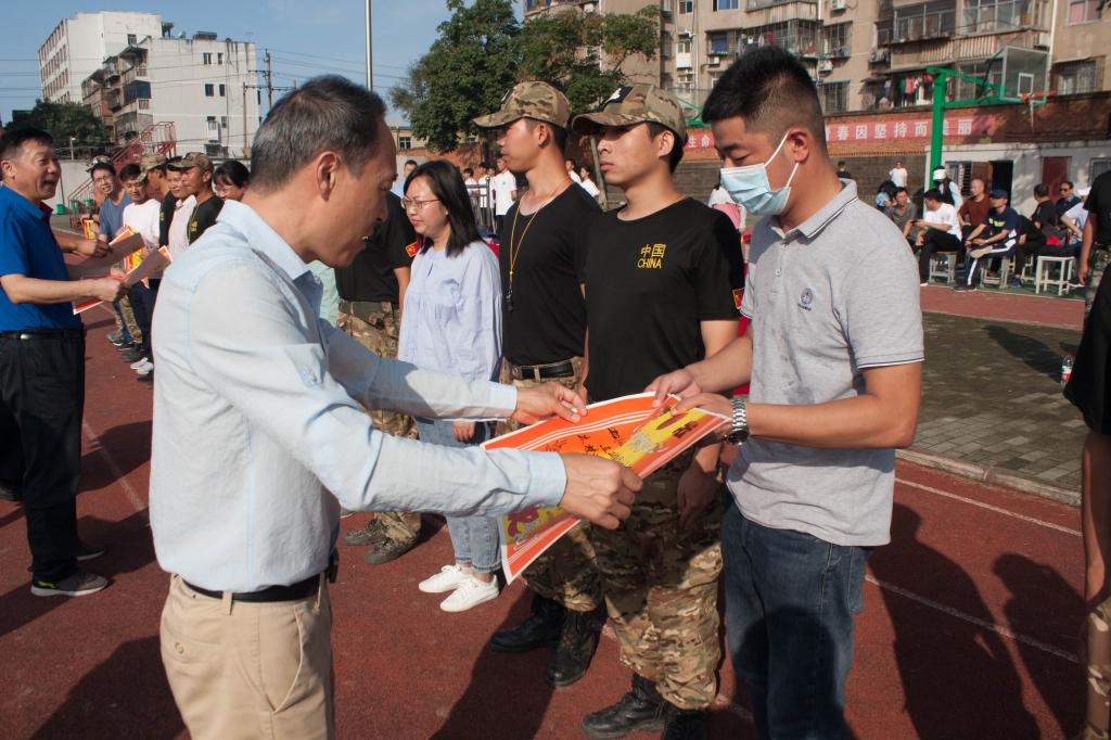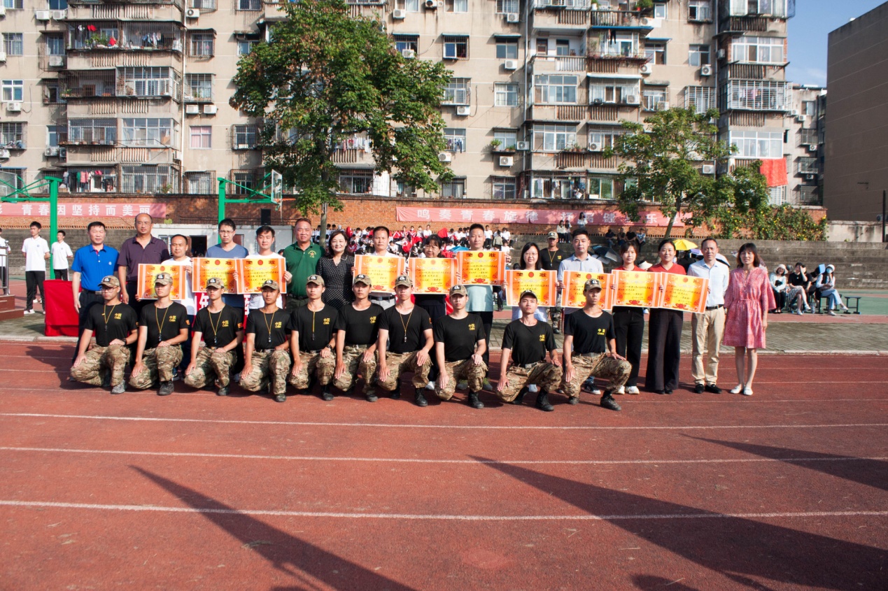 与会领导依次为“先进连队”和“军训标兵”颁奖并合影留念