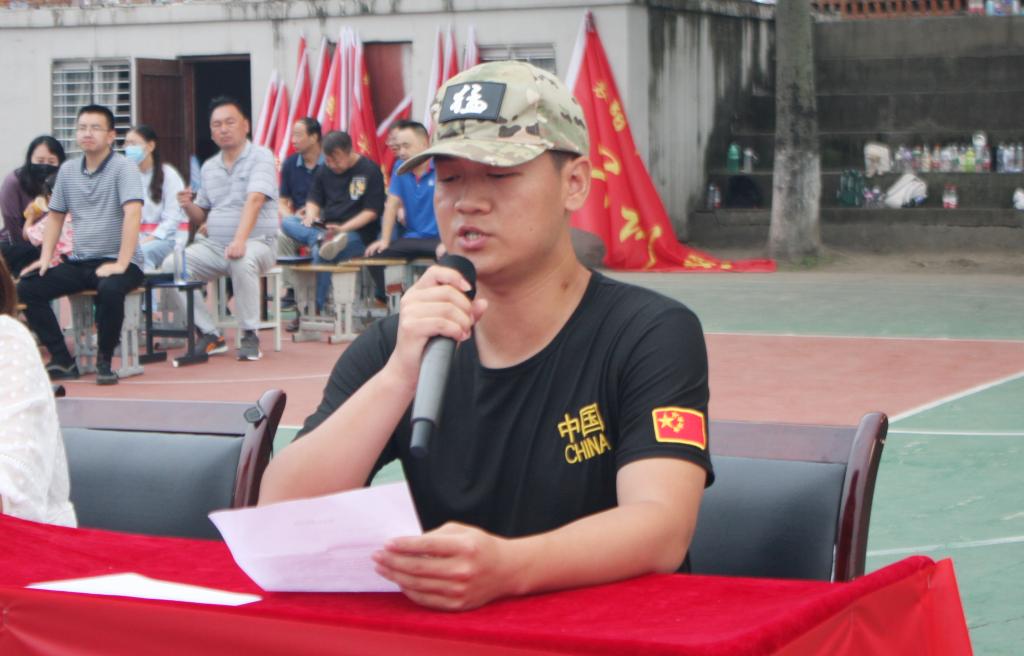 教官代表明海洋代表全体教官郑重承诺:全体教官将时刻保持良好的军人姿态,发扬优良作风,科学组织训练,认真履行职责;严格纪律要求,训练意志品质。受训学生代表2124班陈明雪代表全体学生发言:在军训期间将以一名军人的标准严格要求自己,发扬军人作风,以最饱满的精神和最挺拔的姿态高标准完成各项训练任务。