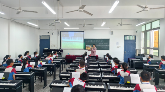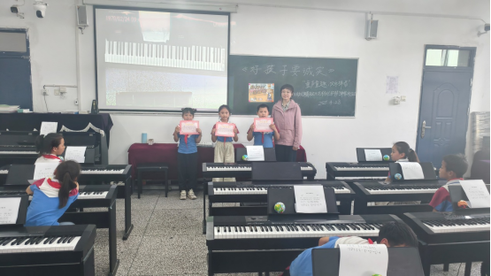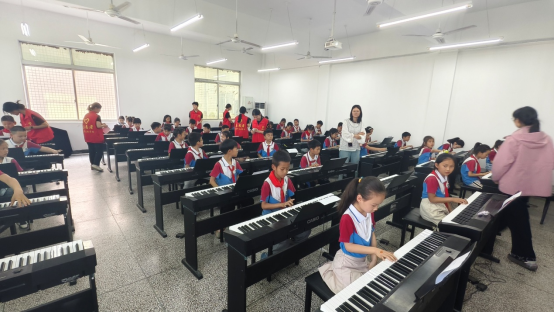 钢琴教学环节,郭老师与志愿者一对一指导,从指法到音符,耐心示范。孩子们专注的神情、初次奏响音符时的惊喜,尽显对音乐的热爱。尽管手法生涩,但在师生共同努力下,大家沉浸于音乐学习的乐趣中。
