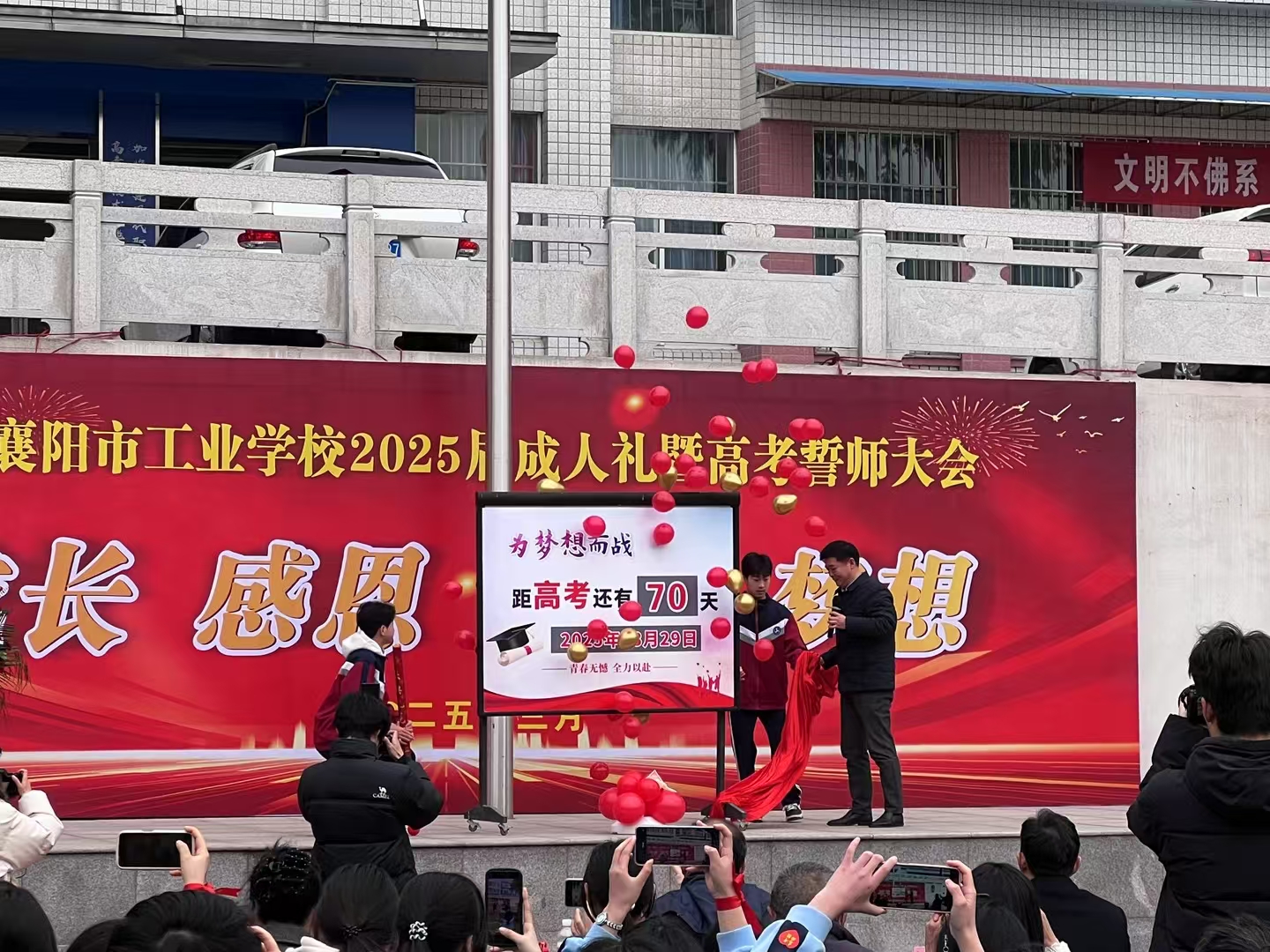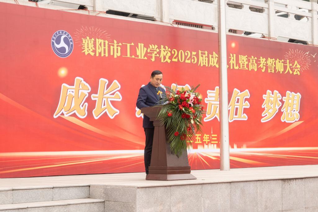 十八而至承大任,今朝誓师勇前行。3月29日上午,春风和煦,暖阳轻抚,襄阳市工业学校隆重举行“成长 感恩 责任 梦想”2025届成人礼暨高考誓师大会。学校党委班子,学院学工处处长何峰、智能制造学院党总支书记张军建,学校全体中层干部、高三年级老师和学生家长齐聚一堂,共同见证2025届毕业生以凌云之志拥抱激情岁月,以璀璨青春闪耀六月华章。