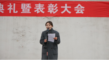 2209班赵卓娅同学代表全体学生发言,她号召大家要明确目标,坚定信念,珍惜时间,勤奋学习,勤学苦练,精益求精。不仅要学习文化知识,还要熟练掌握专业技能。做到心中有目标,脚下有力量,才能在学习和技能训练的道路上走得更远。