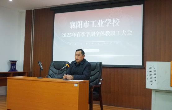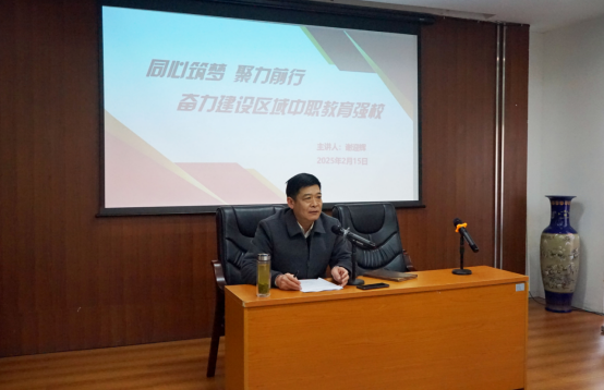 校长谢迎辉以《同心筑梦聚力前行奋力建设区域中职教育强校》为主题,对2024年学校取得的成绩进行了全面总结,对2025年的工作目标和工作举措进行了细致的剖析,明确以省级“双优”校建设为核心任务,以技能高考升学、职教大赛、项目建设为重点突破方向,将中职招生、校企合作、教师队伍建设、专业建设、学生德育作为工作的重要支撑点,多管齐下,全面推动学校在新的一年迈向高质量发展的新征程。