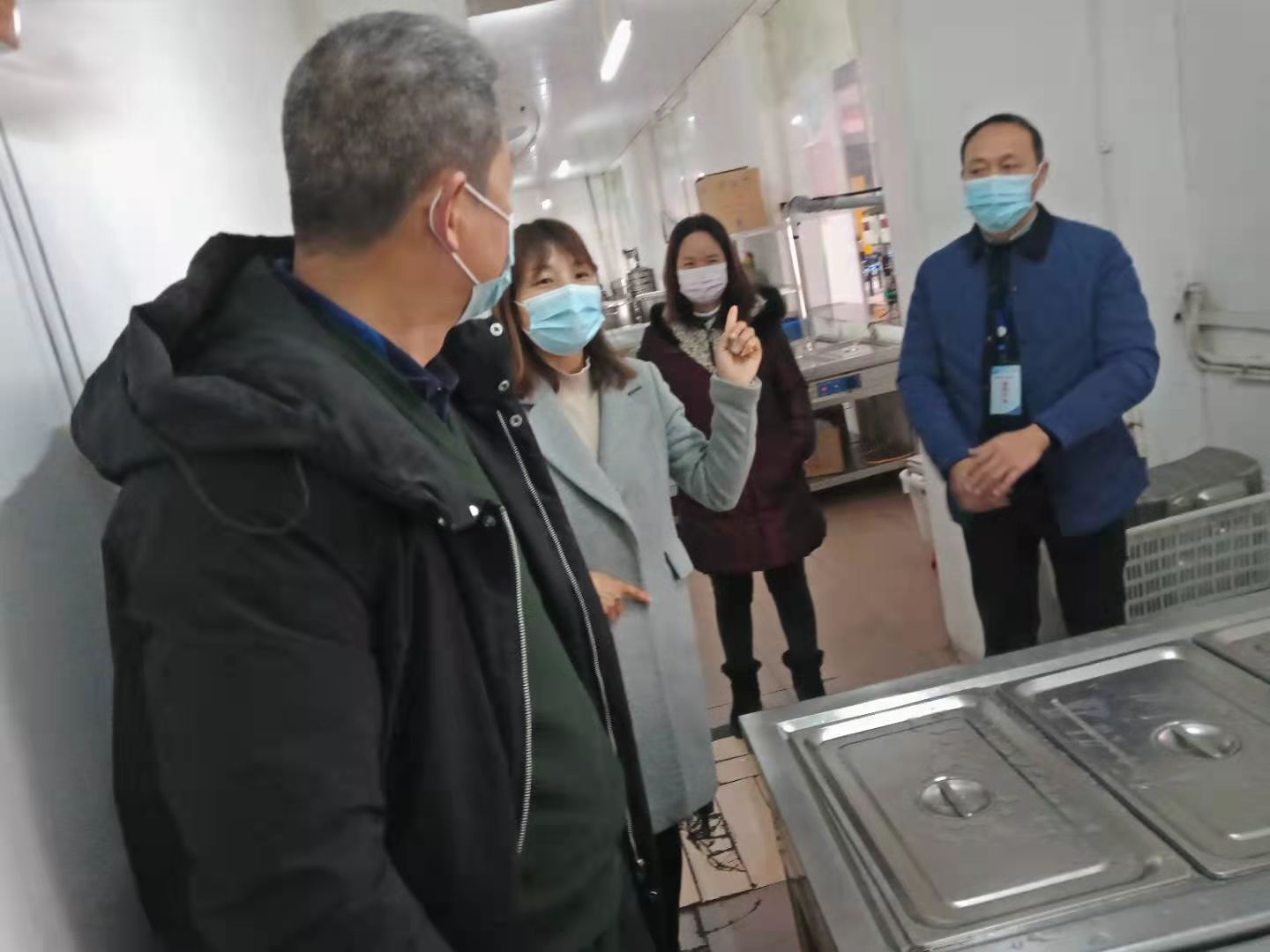 党委副书记王楠、副校长钱玲认真询问了食堂员工体检是否达标,每日晨检情况,疫情期间食堂管理制度等。