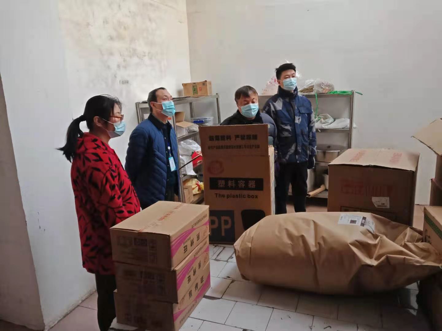 首先检查的是食堂库房,检查组认真查看了食堂里食材的储备,详细询问食堂负责人是否按要求进货,是否分类别储存,生冷食品的储存是否达标,食品有没有存在过期等情况。
