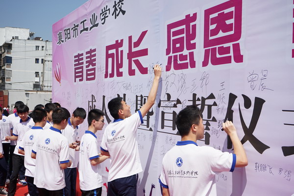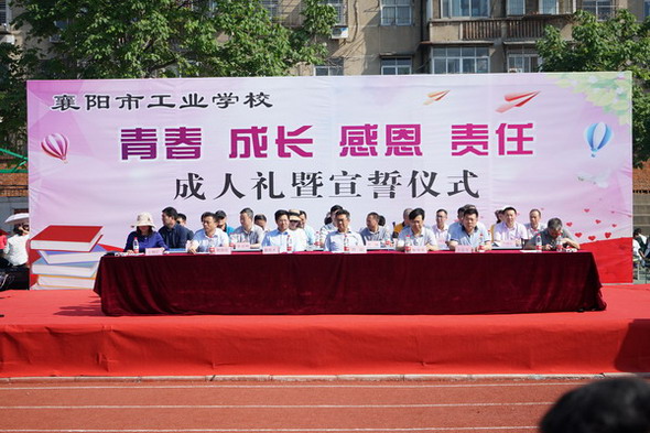 时值初夏,为培养我校18岁公民的感恩意识和担当精神。23日上午,我校在运动场隆重举行了以“青春 成长 感恩 责任”为主题的成人礼感恩教育活动,襄阳汽车职业技术学院党委书记许云,院长耿保荃,学院领导管用才、王达文、程传红、熊良猛,工业学校党委书记、校长王晓红及相关领导出席活动,毕业生的家长及工业学校全体教职工近两千人参与此次活动。