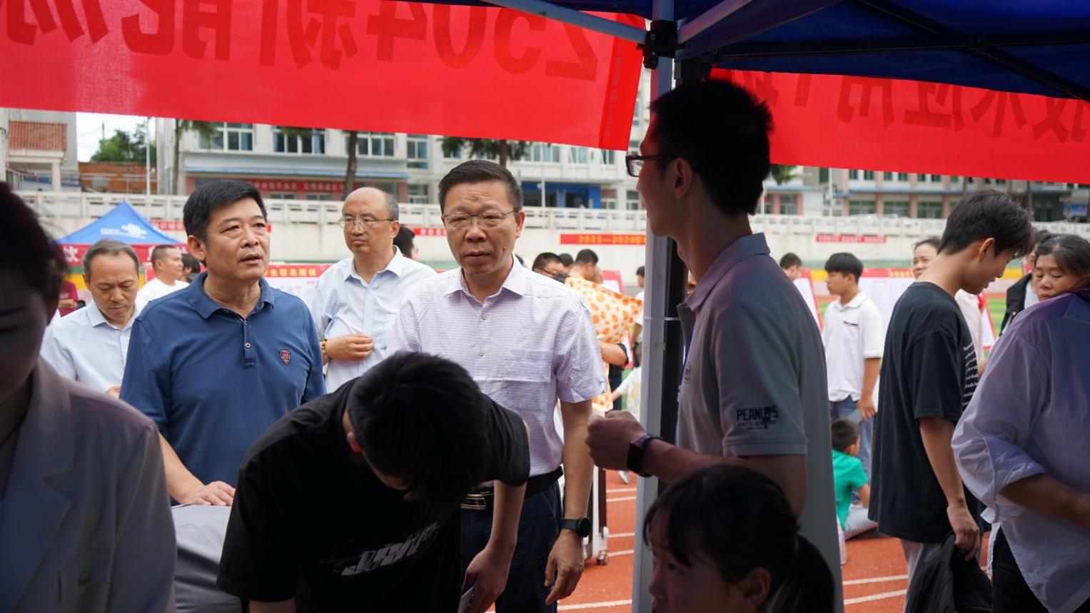 襄阳汽车职业技术学院党委书记程传红、党委副书记丁波,工业学校党委书记高坤、校长谢迎辉及班子成员,深入迎新一线,了解报到进度,慰问工作人员与学生志愿者,并与新生家长亲切交流,鼓励新生勤学技能、不负韶华。
