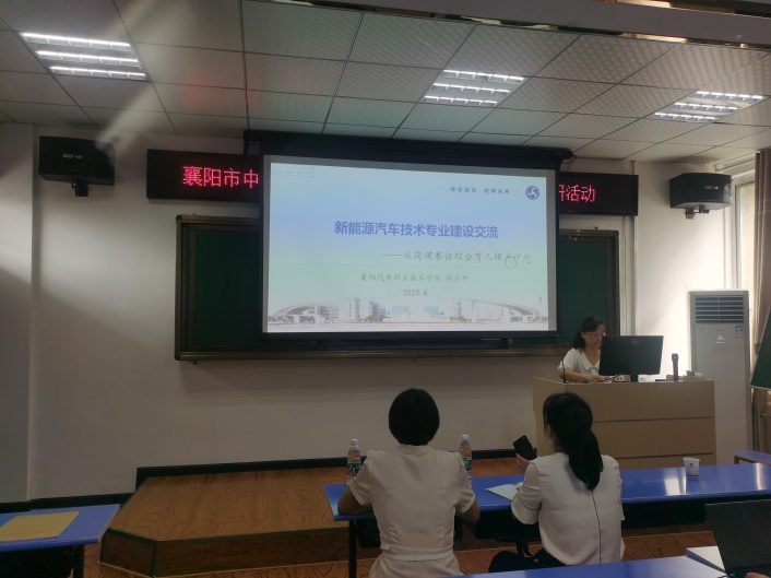 襄阳职业技术学院汽车专业青年讲师罗伟根据个人多年来参与汽车赛事的一些体会做了交流,围绕各级赛事的意义、赛事规程解读、赛题及配分技术、赛事车型技术特点及评分依据等方面做出精准剖析,并根据省赛执裁经验,为各校的大赛准备和注意事项做出指导。两位教师扎实的专业功底、丰富的实践经验获得与会人员的一致高度肯定。