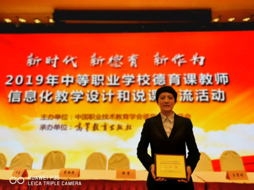 2019年12月25日,全国中等职业学校德育课教师信息化教学设计和说课比赛在上海光大会展中心隆重举行。在高手如云的全国赛场,经过激烈角逐,我校卫艳老师荣获了全国二等奖的好成绩!