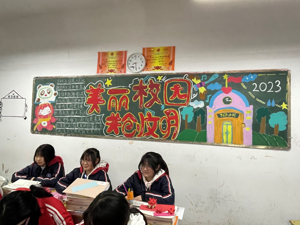 各班利用班会对学生集中开展了“讲文明话,行文明事,做文明人”专题教育;通过横幅、电子屏、黑板报,学习文明礼仪,加强氛围营造,推动文明礼仪规范转化为个人文明习惯的具体实践。