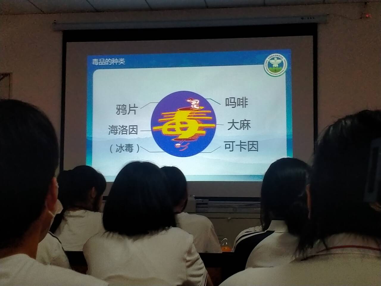 讲座中,何警官结合PPT为学生们介绍了毒品的概念、科学了解“毒品成瘾”、毒品的种类及危害、如何进行自我保护、养良好的行为习惯、如何拒绝毒品危害等,并以真实案例讲述吸毒不仅危害社会、危害个人和他人健康,还会毁灭家庭。一个个触目惊心的案例使同学们对吸食毒品产生的后严重后果有了进一步的加深。