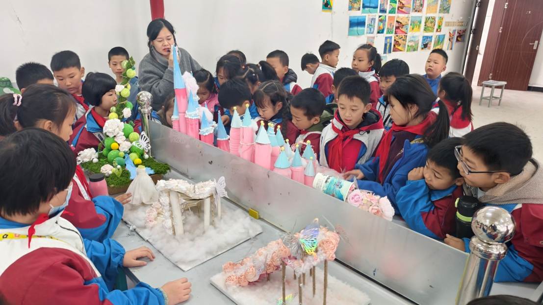 走进“创意手工坊”手工体验区,琳琅满目的手工作品令人目不暇接。孩子们不仅了解了纸艺、泥工、自然材料创作、废旧物品利用、编织等多种手工形式,还近距离感受了非遗文化 —— 掐丝珐琅的独特韵味。一件件创意十足的作品,让孩子们感受到了动手创作的乐趣,也激发了他们的想象力与创造力。