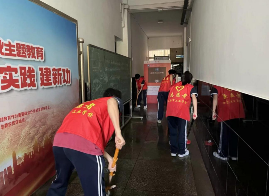 自4月25日起,校园里便活跃着一群身披红色志愿服的青年志愿者。他们穿梭于教学楼走廊,有的手持扫帚清扫垃圾,有的用抹布擦拭墙壁和栏杆,齐心协力让走廊旧貌换新颜。这不仅为师生营造了整洁的环境,更让学生们在合作中培养了责任感与团队精神,让劳动教育在日常学习场景中落地生根。
