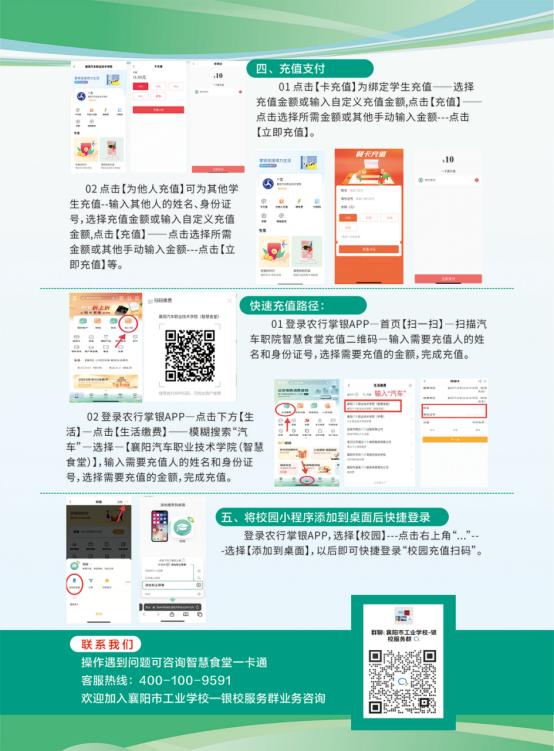 5.就餐卡办理:我校学生就餐使用农业银行一卡通系统,请家长就近办理一张农业银行卡,并携带您的身份证、农行卡(含农行社保卡)以及智能手机到襄阳农行任一网点开通农行掌上银行,在银行工作人员的指导下开启智慧校园生活!(具体方法请看附件)。