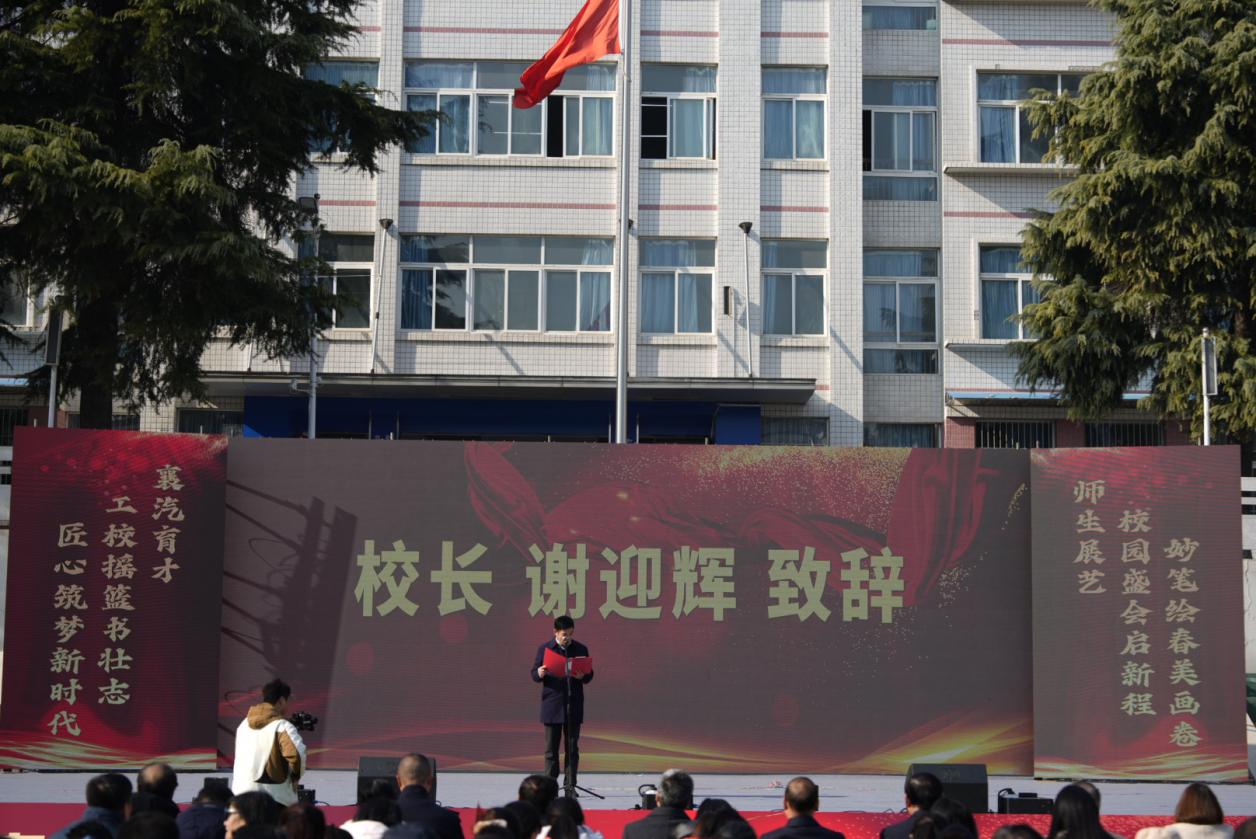 活动伊始,学校校长谢迎辉发表了热情洋溢的新年致辞。他回顾了过去一年学校在教育教学、技能竞赛等方面取得的显著成就,并向为学校发展默默奉献的全体教职工表示衷心感谢。谢校长鼓励全校师生在新的一年里继续发扬奋斗精神,携手共进,为实现学校的“双优”建设目标贡献力量。